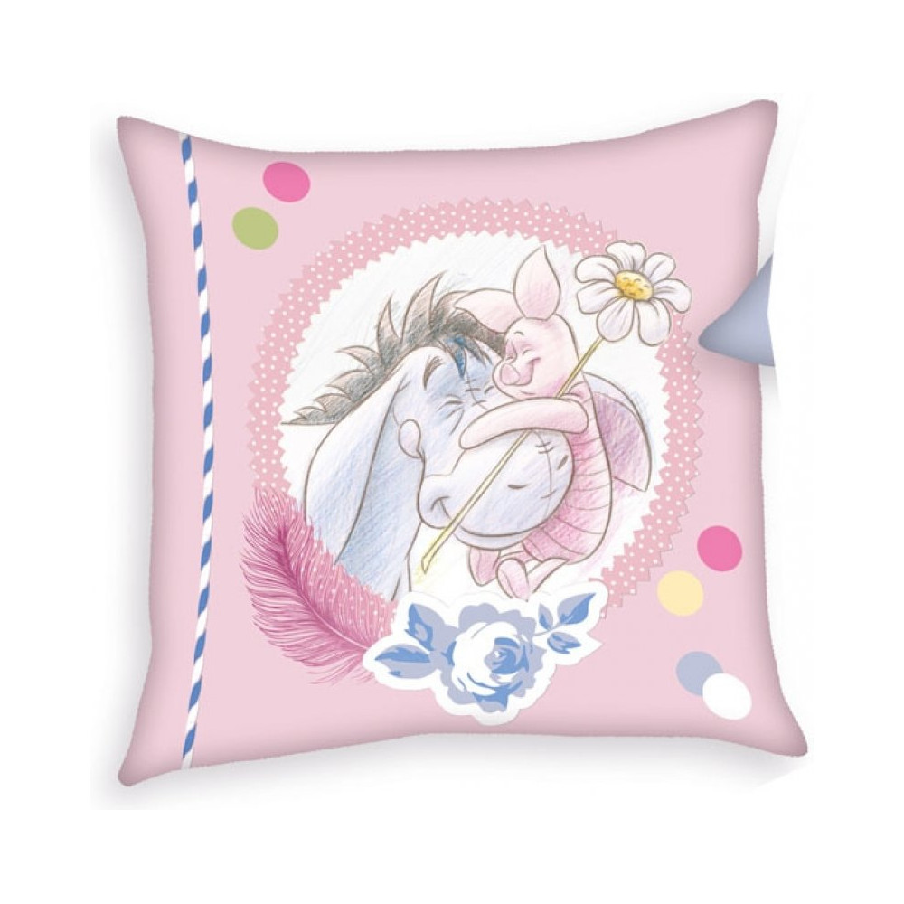 Polštářek s výplní Medvídek Pú a oslík s květinou - 40x40 cm