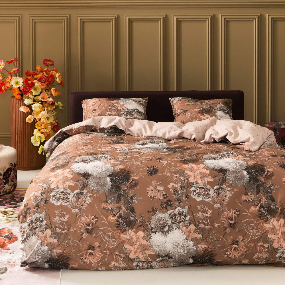 Povlečení s překrásným květinovým vzorem na čokoládově hnědém pozadí zaujme na první pohled. Ložní souprava má potisk oboustranný, který odpovídá fotografii. Prohlédněte si detailní fotografie, které zachycují krásu a precizní potisk této ložní soupravy. Bude dlouho trvat, než si všechny květiny prohlédnete. Nechte se hýčkat luxusem a dopřejte si spánek v kvalitní ložní soupravě značky Essenza.