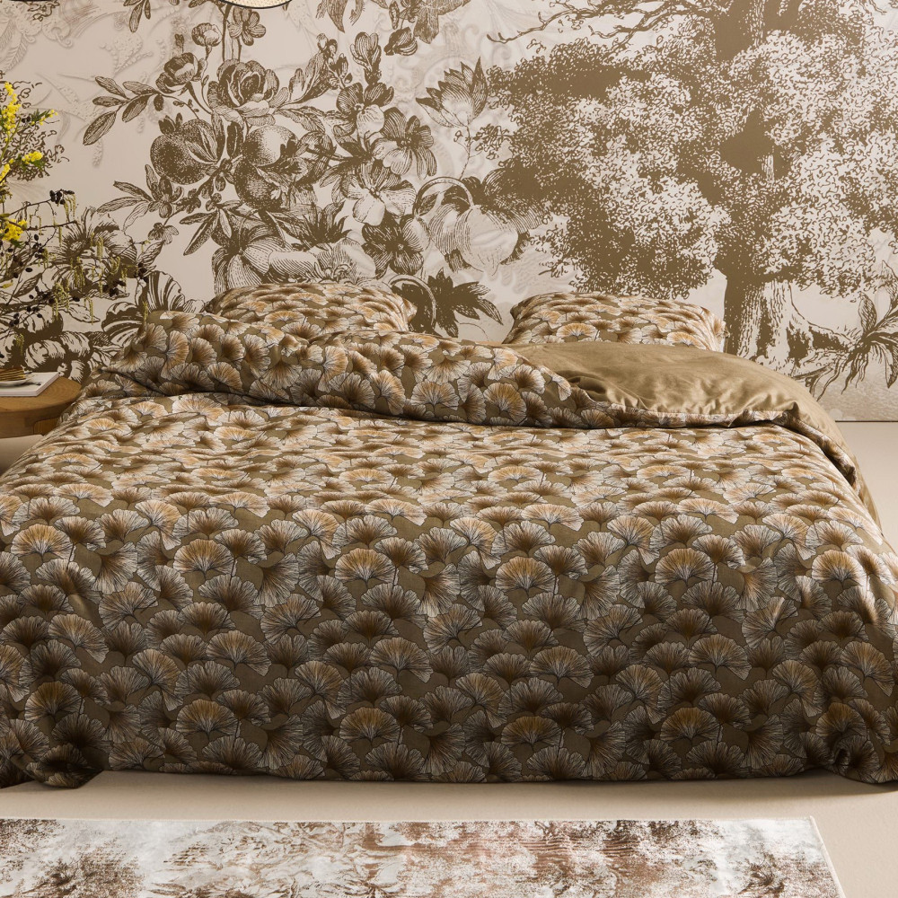 Značkové povlečení z bavlněného saténu Essenza Fleur taupe. Standardní rozměr 140x200, 70x90....