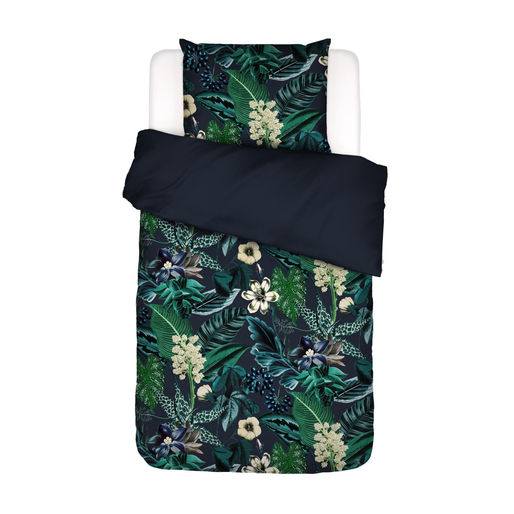 Značkové povlečení z bavlněného saténu Essenza June nightblue. Standardní rozměr 140x200, 70x90. Materiál 100% bavlna.
