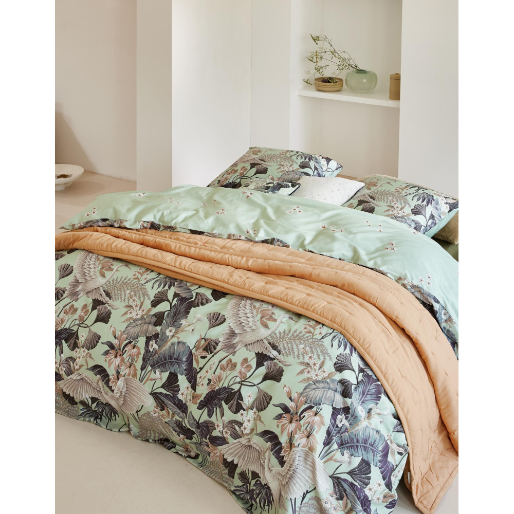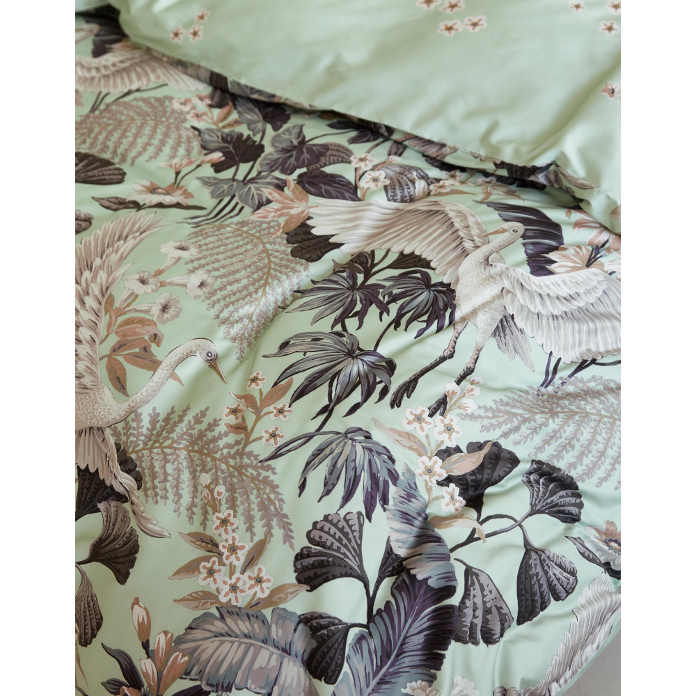 Povlečení s nejpreciznějším potiskem v každém detailu v naší současné nabídce. Povlečení má nádherný květinový potisk, který přesně odpovídá fotografiím. Prohlédněte si důkladně všechny detailní fotografie, které zachycují jedinečnost této luxusní ložní soupravy. Pozadí obou stran povlečení je světle zelenkavé. Přední strana se pyšní nádhernými rostlinami, nad kterými drží stráž hejno volavek. Zadní stranu povlečení zdobí jemný květinový vzor. Povlečení je zabaleno do luxusní dárkové krabice.