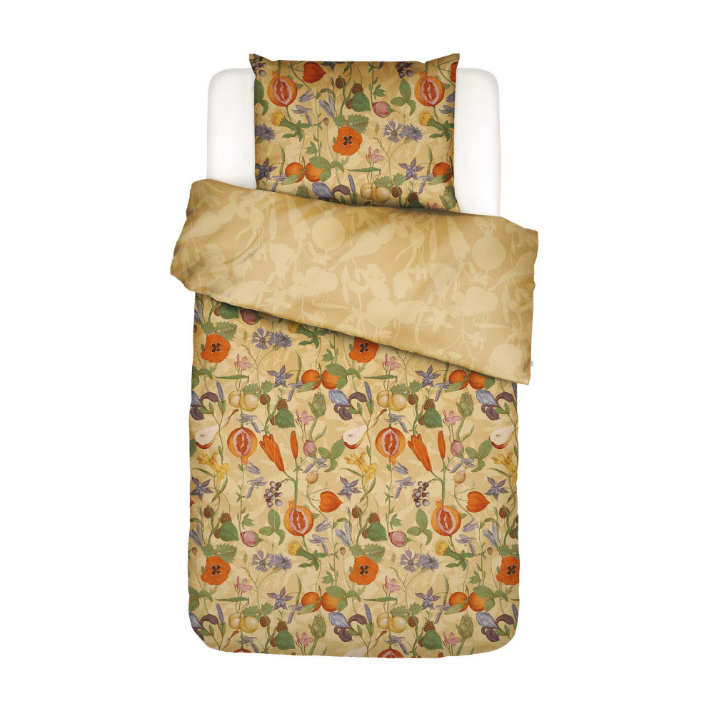 Povlečení s moderním a nadčasovým vzorem pro milovníky výraznějších vzorů (květiny, rostliny a ovocné plody) na nádherném zlato béžovém pozadí. Potisk obou stran je odlišný a odpovídá fotografiím. Prohlédněte si detailní fotografie skutečného povlečení.