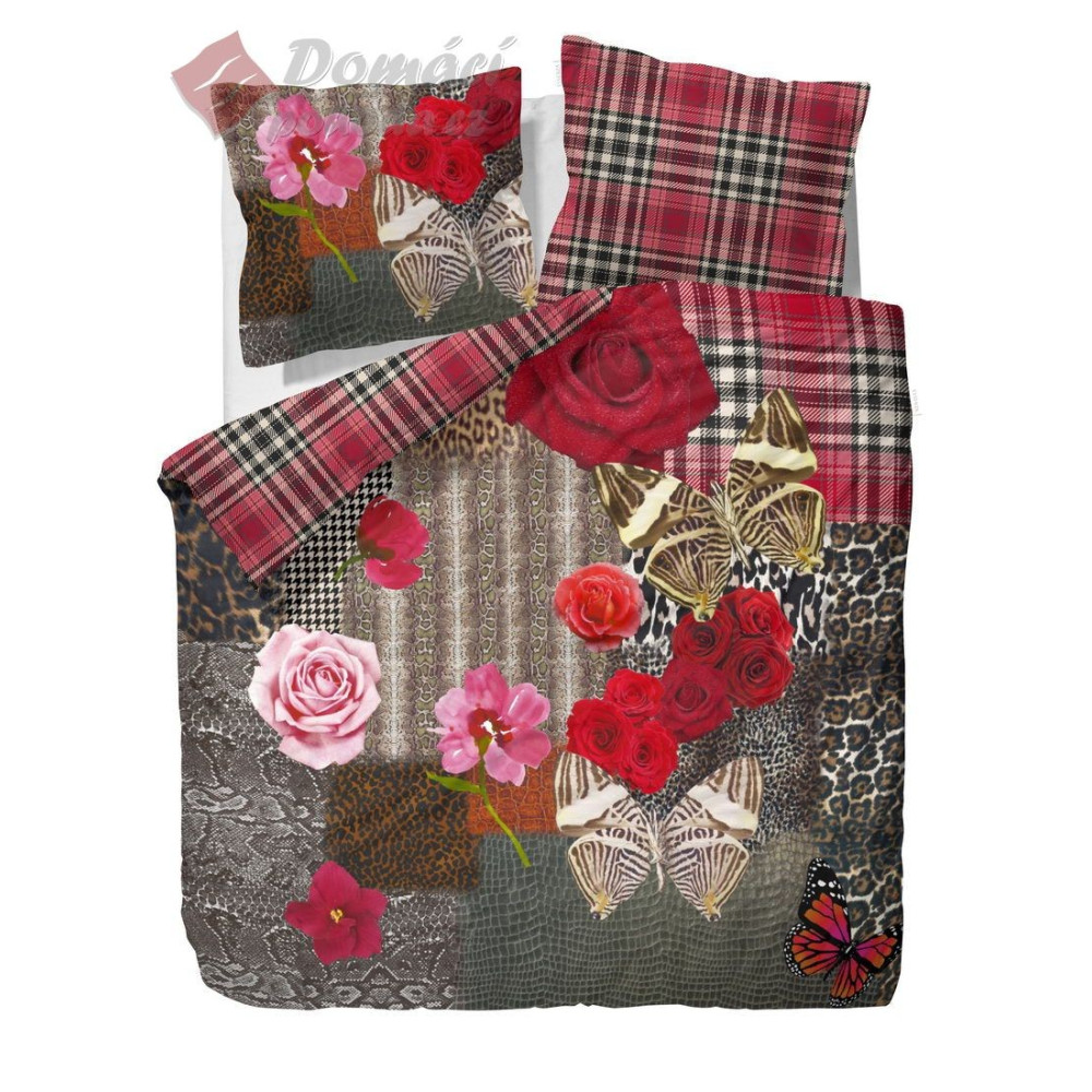 Exkluzivní ložní souprava Essenza Blush Brown ve standardním rozměru 140x200 70x90 cm je vyrobena ze 100% bavlněného saténu vysoké kvality. Toto jedinečné povlečení je oboustranné, v moderní kombinaci precizního fototisku květin a motýlů na pozadí připomínající zvířecí srst a červenočerného káro vzoru.