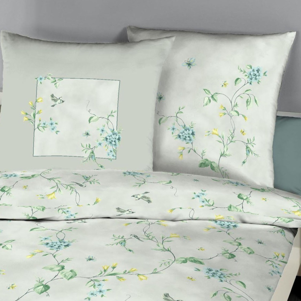 Oblíbený romantický vzor Birdy 140x200 + 70x90 cm v zelenkavém odstínu. Makosaténové povlečení nejvyšší kvality Birdy krémové je ušité ze 100% egyptské bavlny. Tato hustá a jemná tkanina s hladkým jemně lesklým povrchem, která Vás vždy pohladí, je tkaná v atlasové vazbě z jemných česaných přízí, vyrobených z kvalitních druhů dlouhovláknité egyptské bavlny.