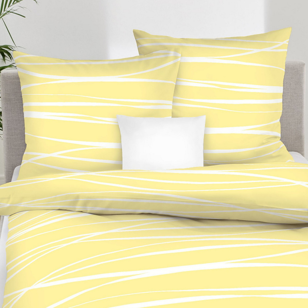 Motion Colours žluté je atraktivní vzor na vysoce kvalitní makosaténové ložní soupravě od německého výrobce. Toto povlečení je v elegantní kombinaci světle žluté a bílé barvy a tvoří ho nepravidelné vlnky. Potisk přesně odpovídá fotografiím. Povlečení se pyšní vysokou kvalitou německého výrobce, je ušito z nejkvalitnější 100% egyptské bavlny.