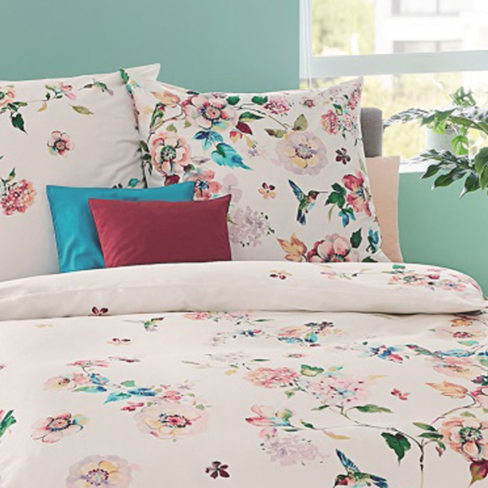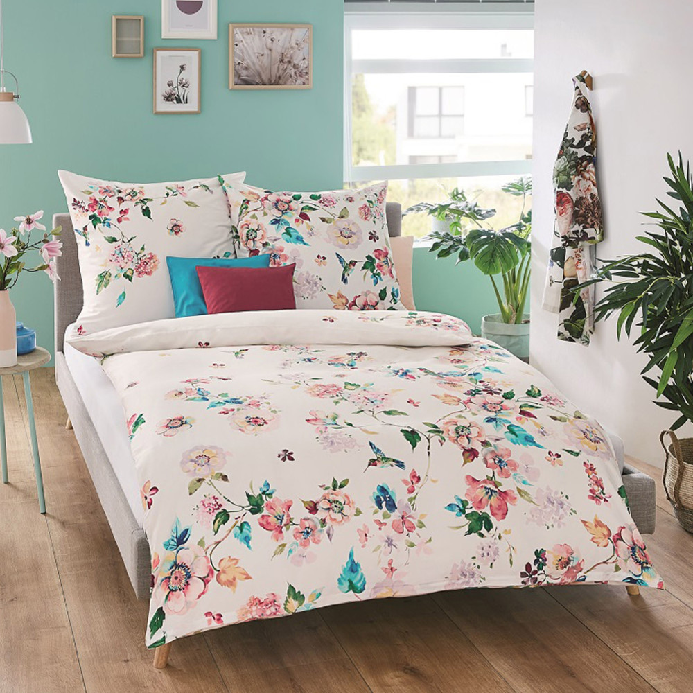 Tato romantická ložní souprava zaujme nádhernými obrázky květin a poletujících ptáčků na smetanovém pozadí. Potisk polštáře je z každé strany odlišný, jak lze vidět na fotografii. Dopřejte si zdravý odpočinek v tomto úžasném povlečení mimořádné kvality, kterou zcela jistě po vyzkoušení oceníte.