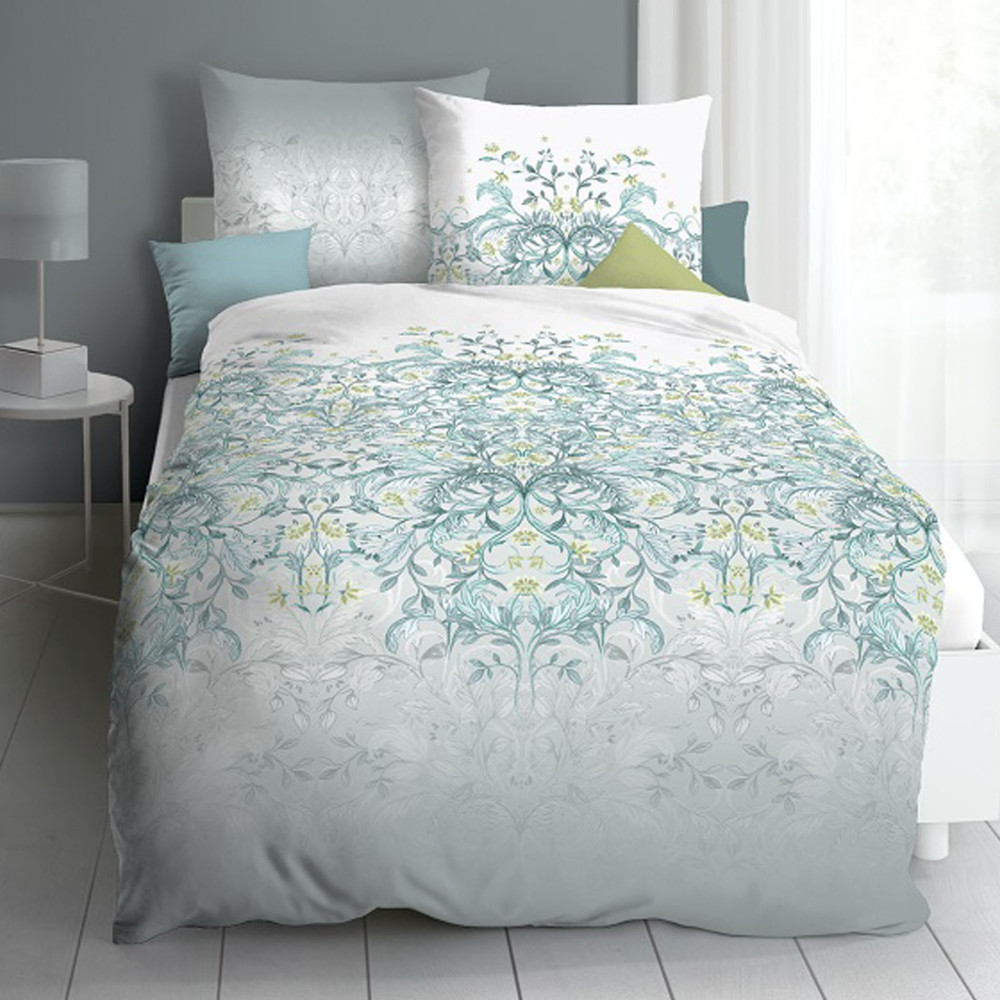 Tato luxusní ložní souprava v zelenkavých s zelenošedých odstínech je doslova poseta nádhernými květinovými ornamenty. Potisk polštáře je z každé strany odlišný, jak lze vidět na fotografii. Dopřejte si zdravý odpočinek v tomto úžasném povlečení mimořádné kvality, kterou zcela jistě po vyzkoušení oceníte.