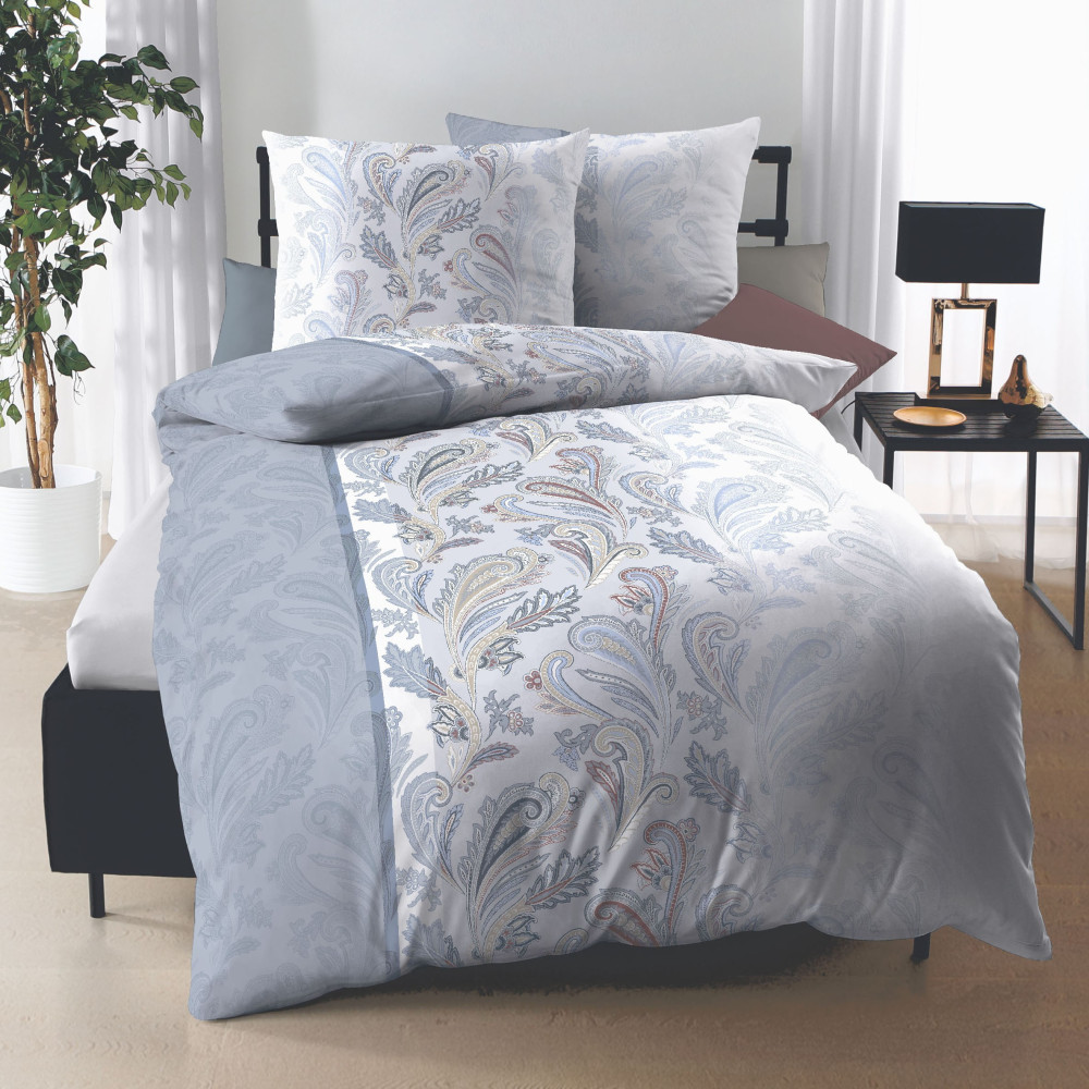 Popis designu - nádherné decentní květinové ornamenty na světlém šedo-levandulovém podkladu působí velmi elegantně. Nechte se hýčkat luxusem, který vyzařuje z této ložní soupravy a dopřejte si spánek v povlečení vysoké kvality.