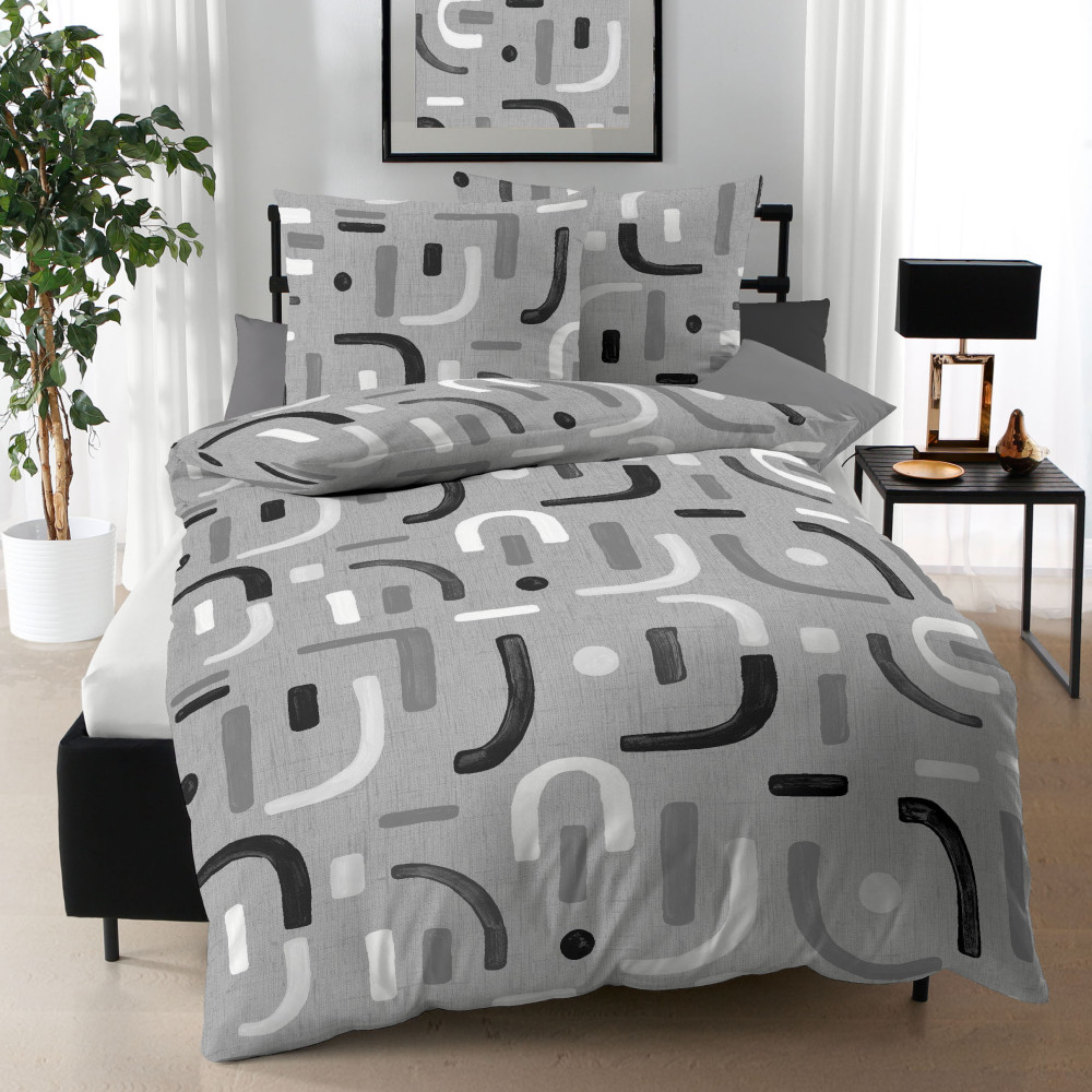 Popis designu: krásné povlečení s geometrickým vzorem v elegantní kombinaci šedých odstínů. Ložní souprava má potisk polštáře odlišný, jak lze vidět na fotografiích.