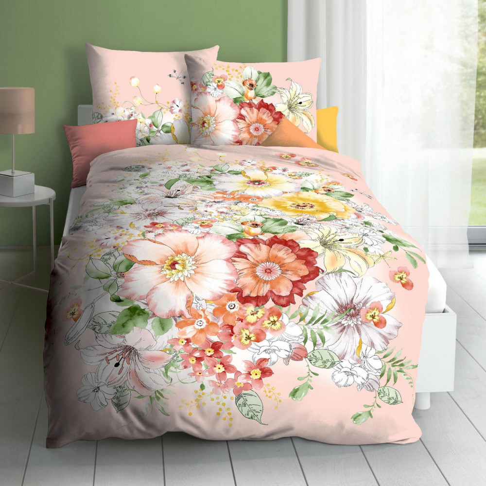Popis designu - velké barevné květy nejrůznějších rostlin na světle broskvovém pozadí působí velmi příjemným a optimistickým dojmem. Nechte se hýčkat touto atmosférou a dopřejte si spánek v povlečení vysoké kvality.
