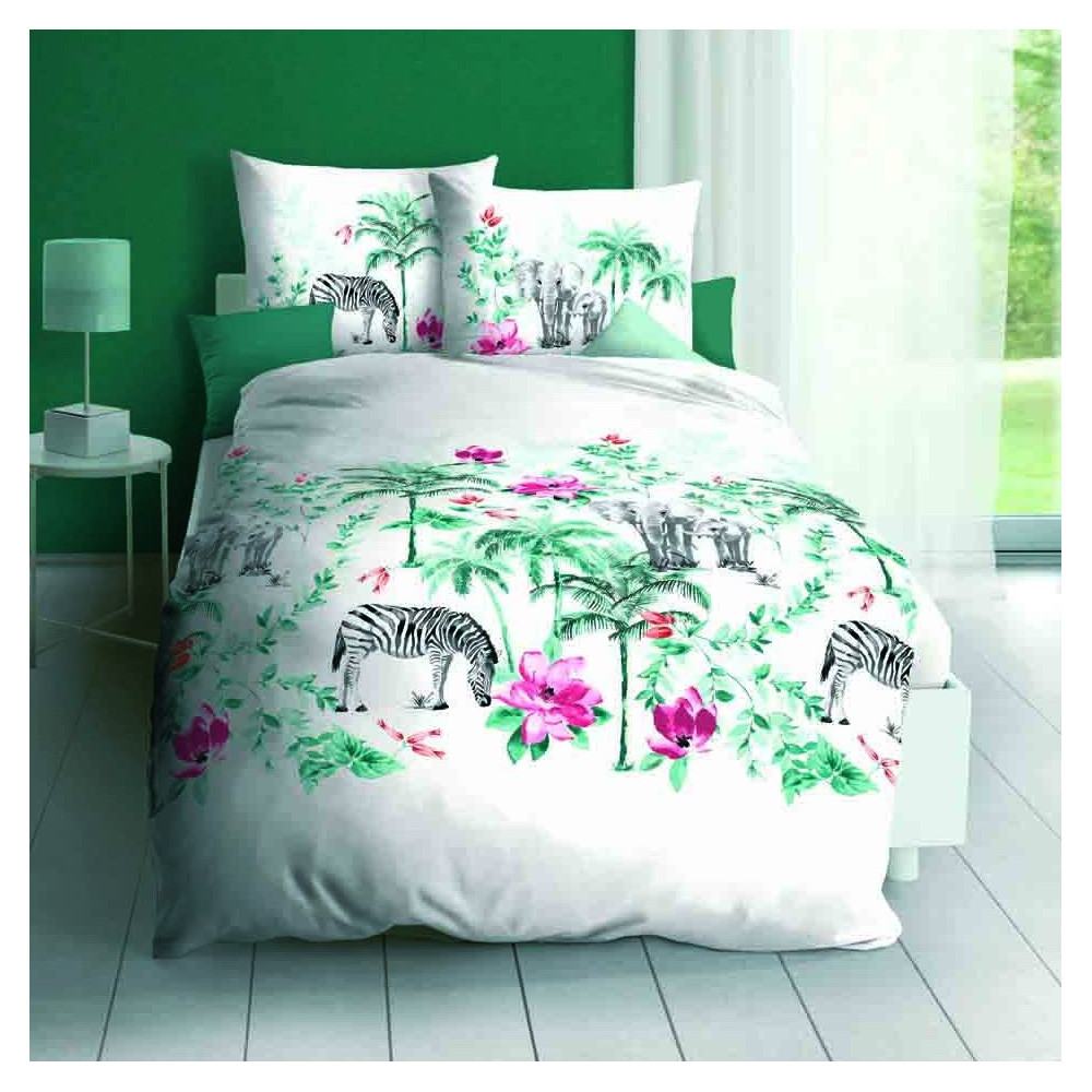 Popis designu : Palmy, rozkvetlé rostliny a v této kráse se prochází sloni a zebry. Velmi povedená ložní souprava s motivem Safari.