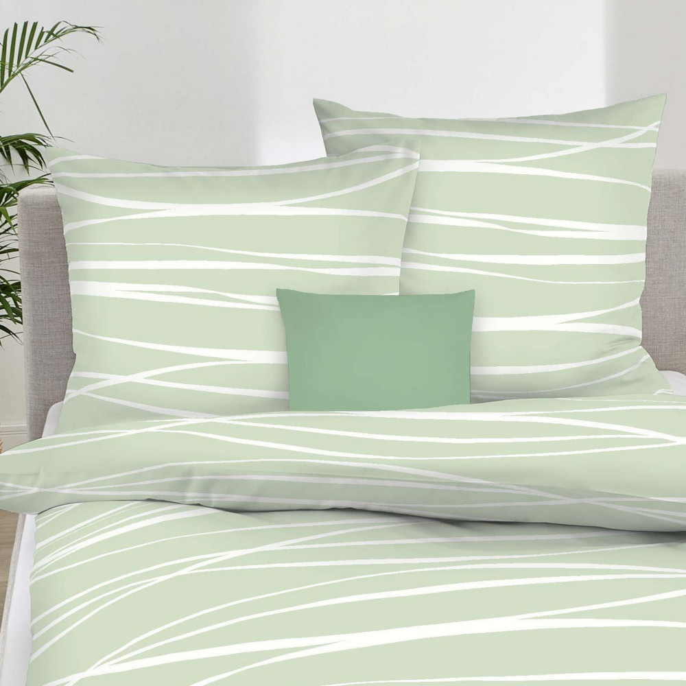 Motion Colours zelené je atraktivní vzor na vysoce kvalitní makosaténové ložní soupravě od německého výrobce. Toto povlečení je v elegantní kombinaci světle zelené a bílé barvy a tvoří ho nepravidelné vlnky. Potisk přesně odpovídá fotografiím. Povlečení se pyšní vysokou kvalitou německého výrobce, je ušito z nejkvalitnější 100% egyptské bavlny.