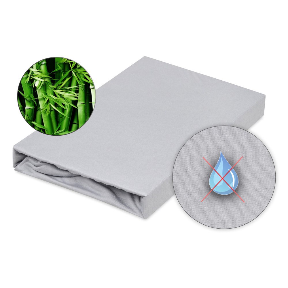 Ležiacu časť prestieradla tvorí 100% bambusová tkanina s nepriepustnou polyuretánovou (PU) a vrstvou, ktorá neprepustí tekutinu. Boky prestieradla tvoria bambusový úplet vysoký 25 cm v rovnakej farbe ako horná nepriepustná strana. Prestieradlo má po celom obvode všitú gumou pre pevné a stabilné uchytenie prestieradla na matrac.
