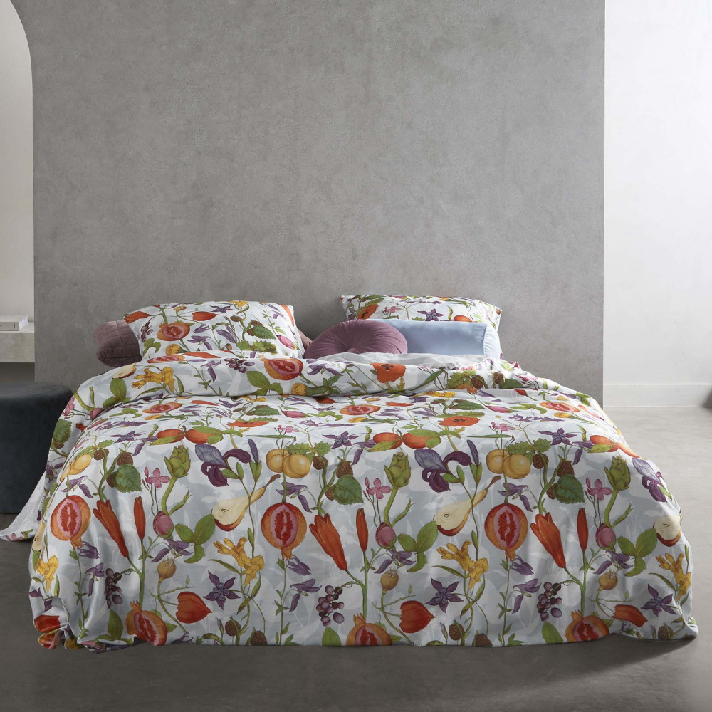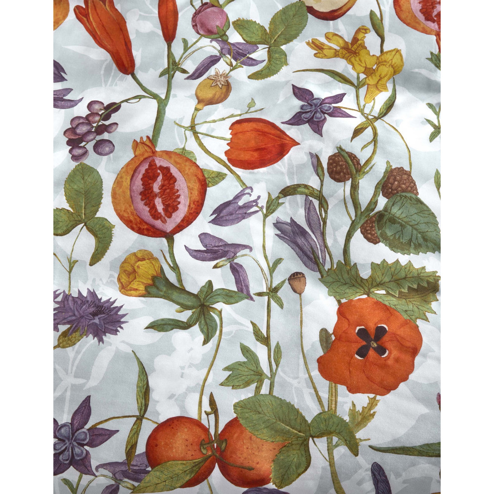 Povlečení s moderním a nadčasovým vzorem pro milovníky výraznějších vzorů (květiny, rostliny a ovocné plody) na nádherném světle modrém pozadí. Potisk obou stran je odlišný a odpovídá fotografiím. Prohlédněte si detailní fotografie skutečného povlečení.