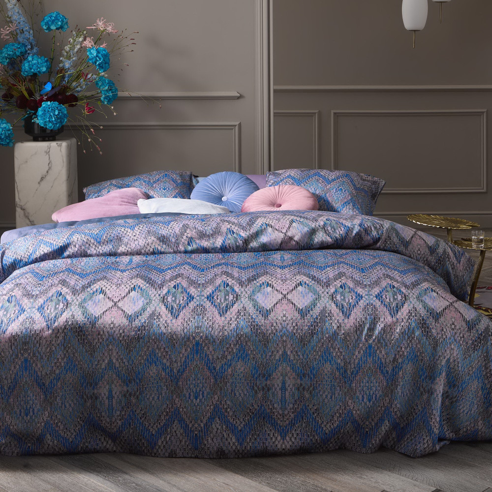 Luxusní povlečení s ornamenty připomínajícími hadí kůži v modro šedo růžových odstínech. Potisk odpovídá fotografiím. Prohlédněte si důkladně detailní fotografie, které zachycují krásu a jedinečnost tohoto povlečení. Ložní souprava se pyšní precizním potiskem a krásnými dlouhotrvajícími barvami.