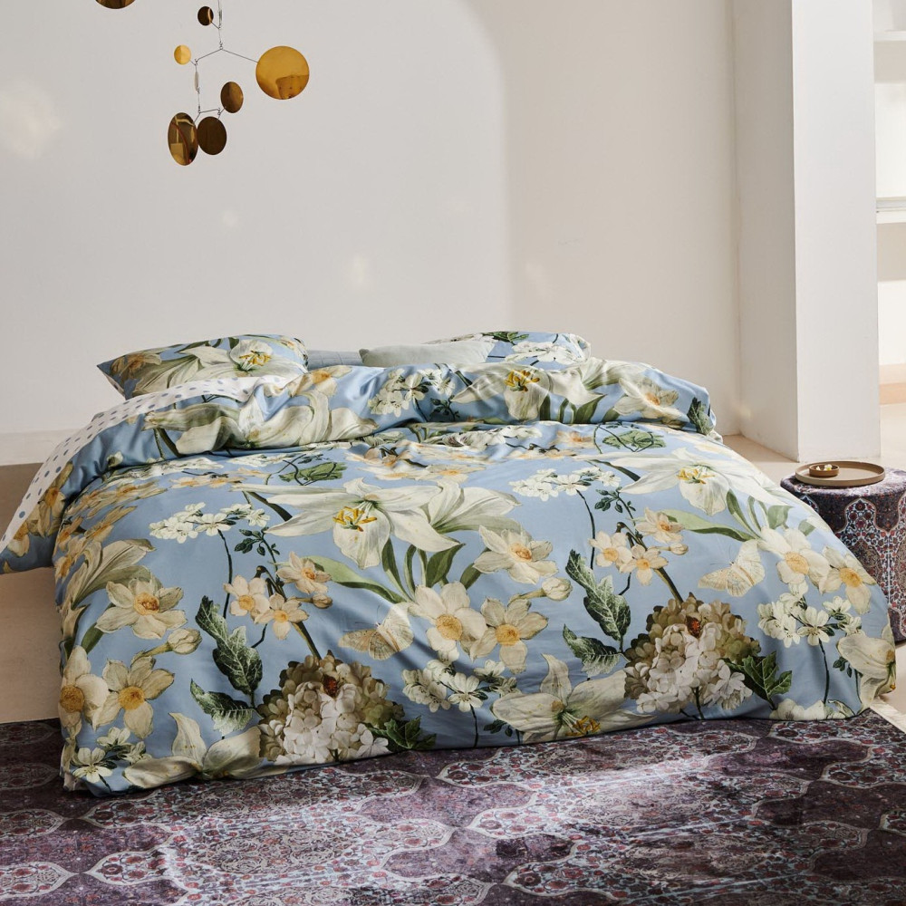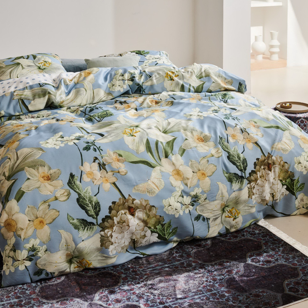 Povlečení s překrásným květinovým vzorem na nádherném ledově modrém pozadí. Ložní souprava má potisk oboustranný, který přesně odpovídá fotografiím. Na detailních fotografiích si můžete prohlédnout dokonalý potisk. Nechte se hýčkat luxusem této značky a dopřejte si kvalitní povlečení.