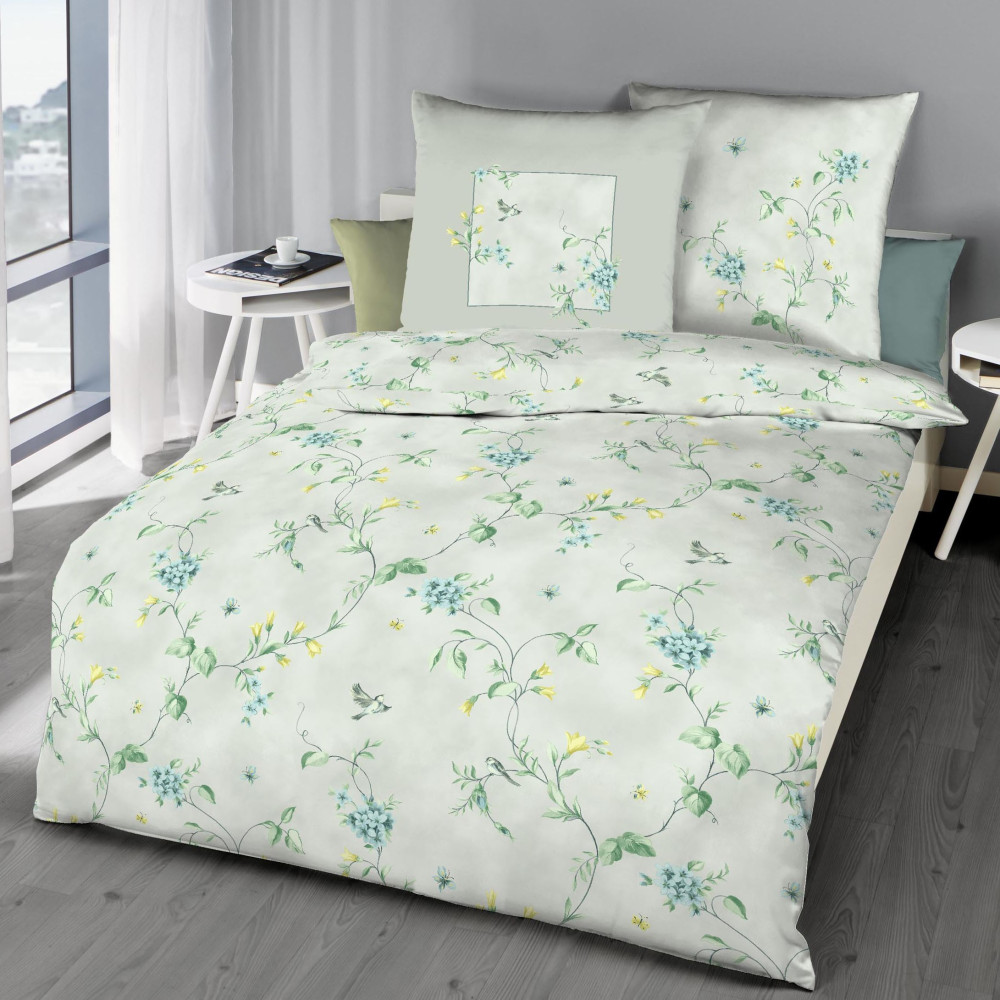 Oblíbený romantický vzor Birdy 140x200 + 70x90 cm v zelenkavém odstínu. Makosaténové povlečení nejvyšší kvality Birdy krémové je ušité ze 100% egyptské bavlny. Tato hustá a jemná tkanina s hladkým jemně lesklým povrchem, která Vás vždy pohladí, je tkaná v atlasové vazbě z jemných česaných přízí, vyrobených z kvalitních druhů dlouhovláknité egyptské bavlny.