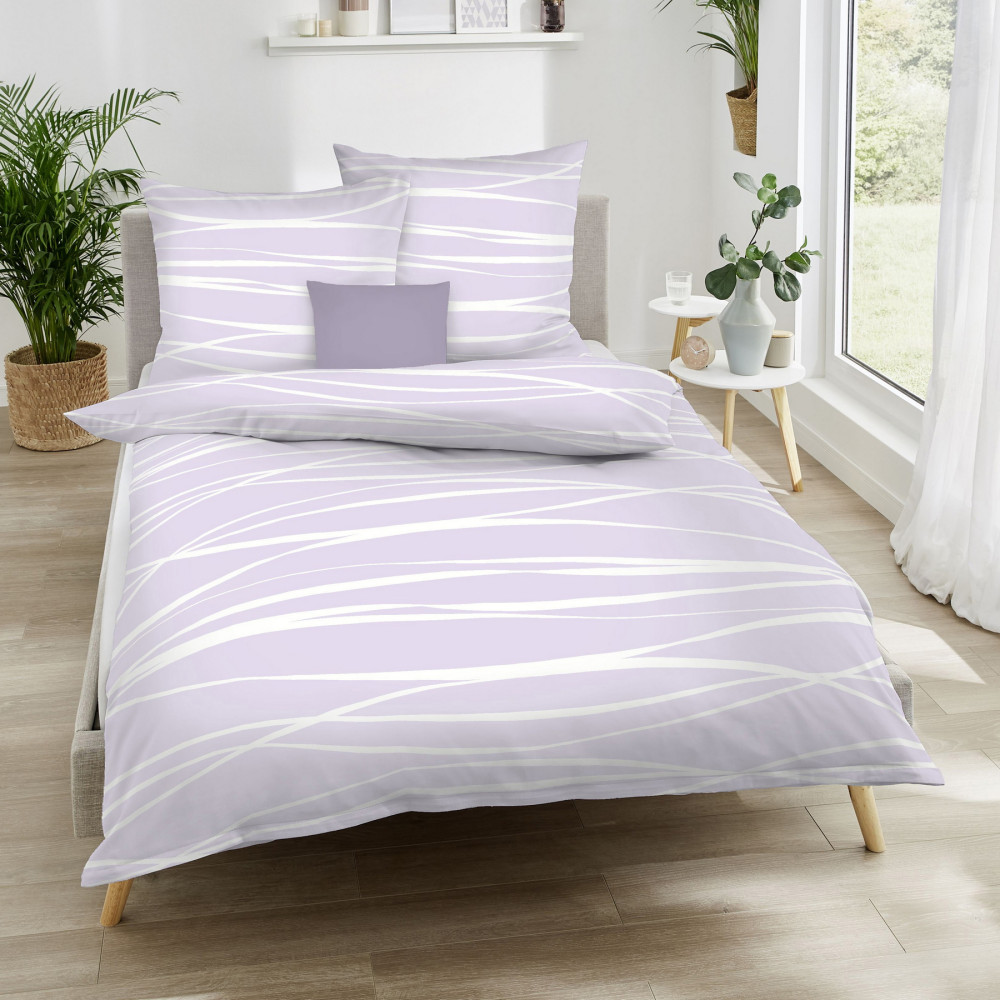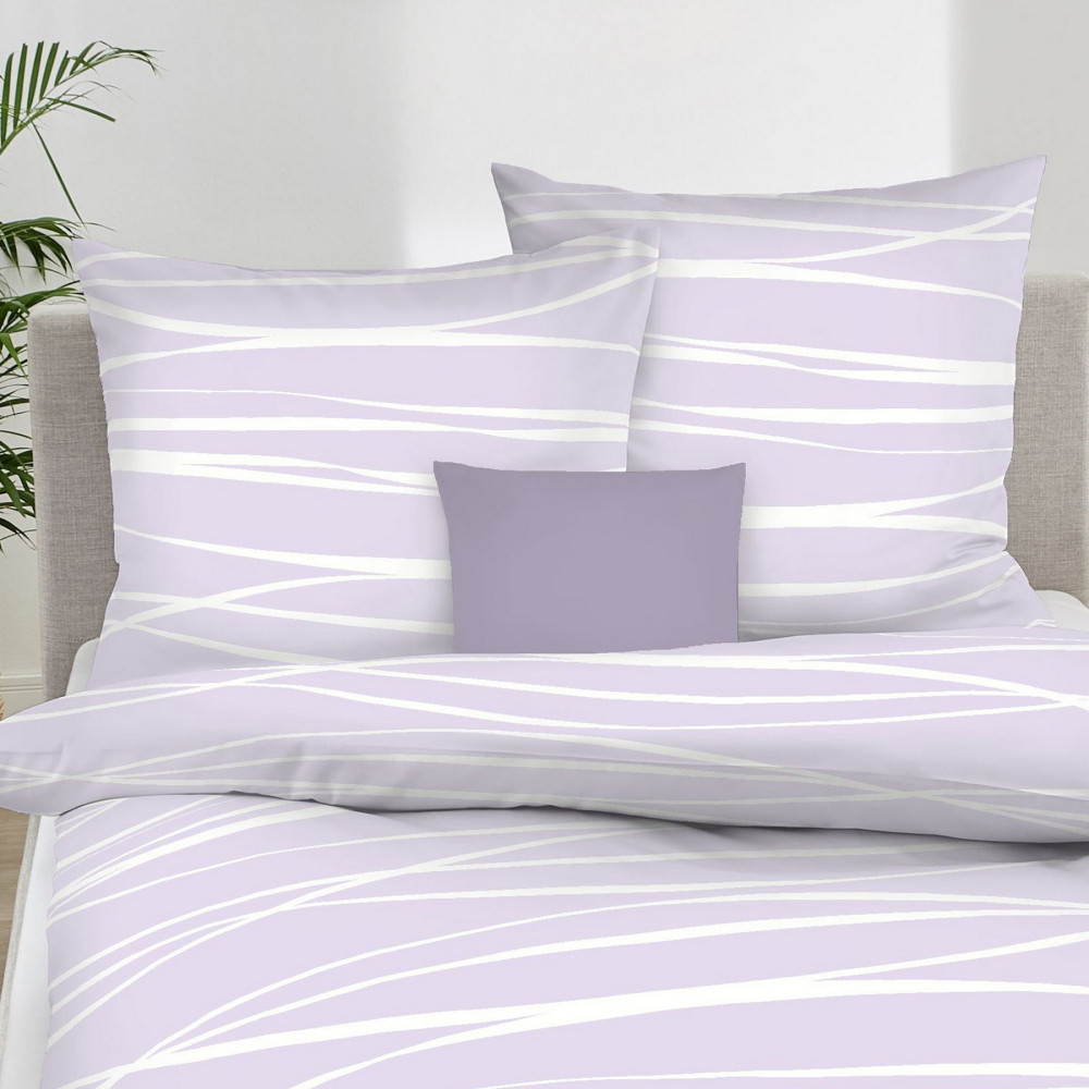 Motion Colours fialkové je atraktivní vzor na vysoce kvalitní makosaténové ložní soupravě od německého výrobce. Toto povlečení je v elegantní kombinaci šeříkově fialkové a bílé barvy a tvoří ho nepravidelné vlnky. Potisk přesně odpovídá fotografiím. Povlečení se pyšní vysokou kvalitou německého výrobce, je ušito z nejkvalitnější 100% egyptské bavlny.